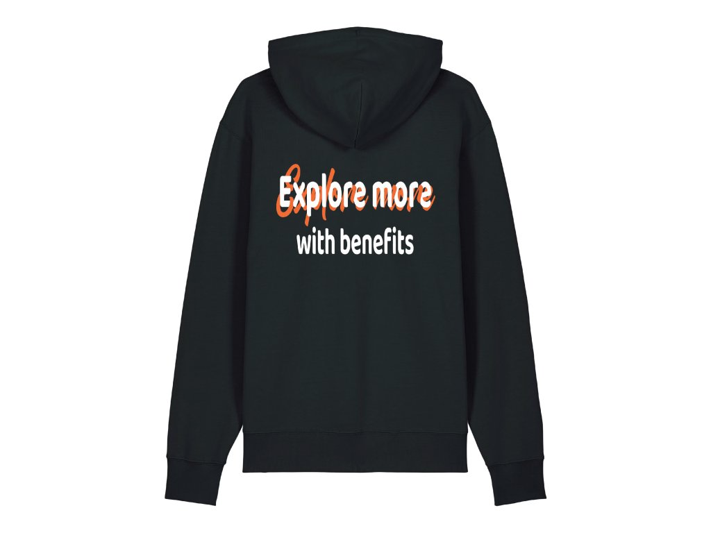 Tohle je tvoje nová uniforma pro objevování! Naše mikina "Explore more with Benefits" není jen tak nějaký hadr – je to tvoje připomínka, že máš jít ven, objevovat víc a užívat si všechny ty skvělý výhody, co život nabízí (včetně téhle boží mikiny). Je super pohodlná, takže je ideální jak na gauč, tak i na ty spontánní výlety do přírody. Hoď ji do košíku a začni žít s Benefits!